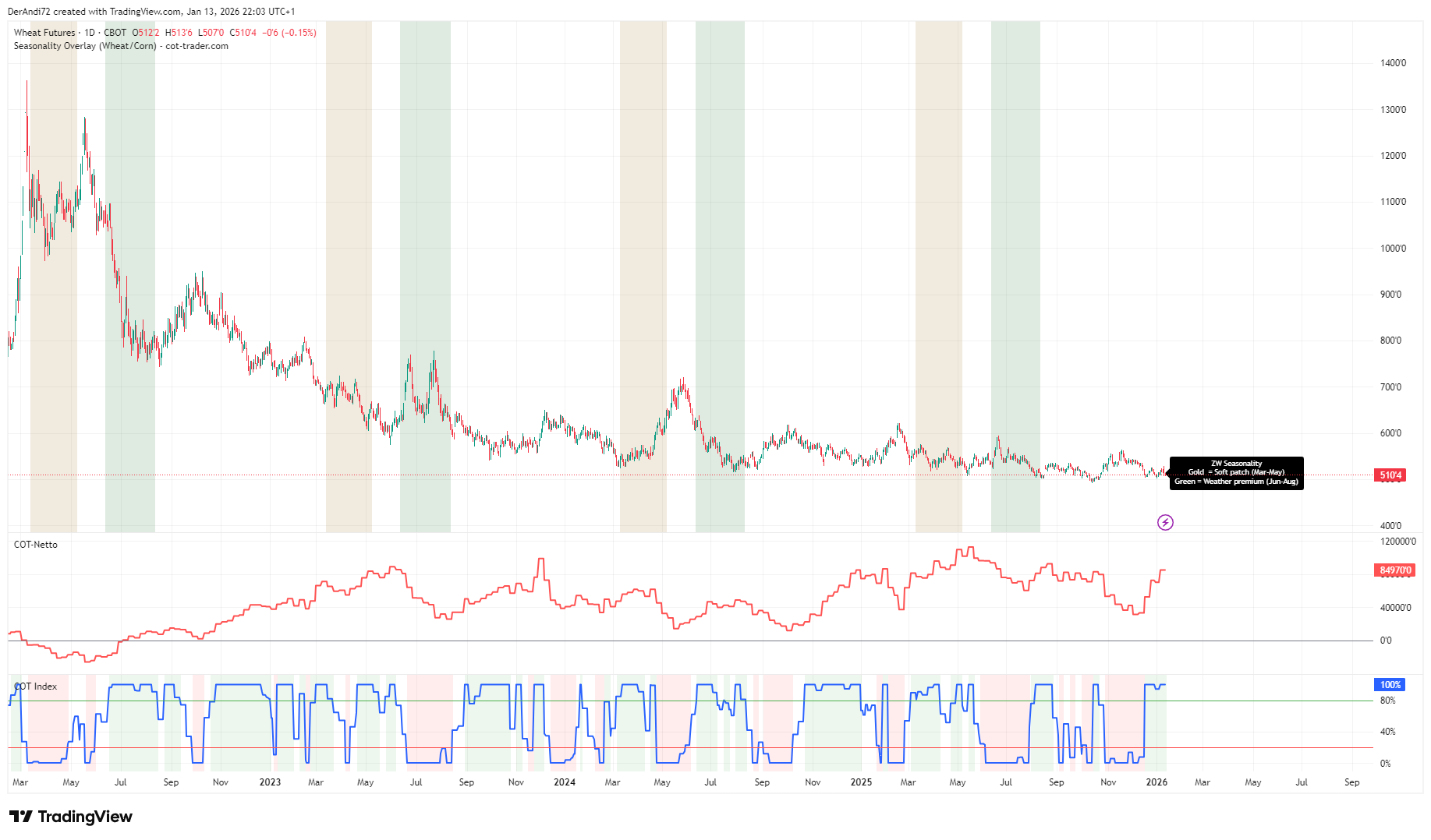 Especially in agricultural commodities like Wheat and Corn, this combination helps me stay patient, avoid overtrading, and align seasonal tendencies with real positioning in the futures market.